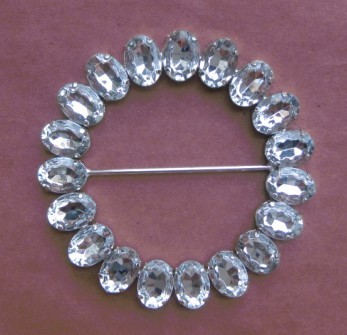 Jumbo round buckle w/clear stones in silver setting (at nearly 4 inch in diameter)